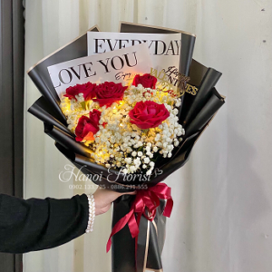 Bó hoa hồng đỏ nhỏ xinh dễ thương.