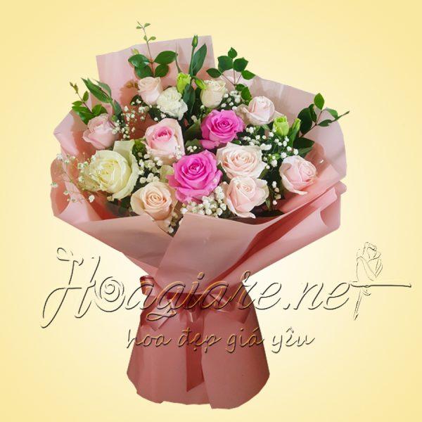 Hoa hồng kem mix hài hòa cùng những bông hồng đào...